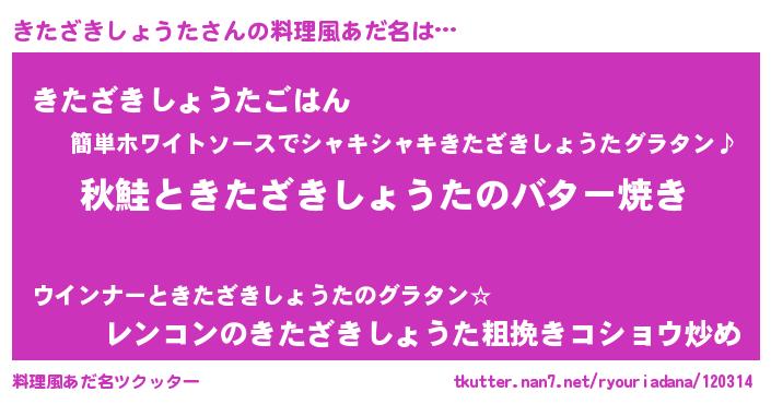 | 胡散臭い通販商品みたいなあだ名 | 『来世でも幸せになれる水素水…その名も「きたざきしょうた」』 |