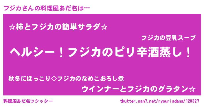 | 男性向けラノベタイトル風あだ名 | 『Re:フジカから始める異世界生活』 |
