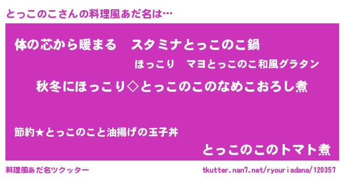 | 意味不明あだ名 | 『とっこのこフォーエバー』 |