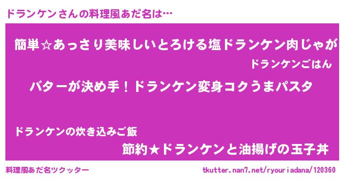 | ヘコむあだ名 | 『ドランケン(震え声)』『ドラふぇ~』 |