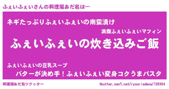 | 男性向けラノベタイトル風あだ名 | 『うちのふぇいふぇいが世界を掌握している!』 |