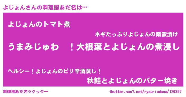 | 女子向けラノベタイトル風あだ名 | 『よじょんの婚約者』『闇のよじょん』 |