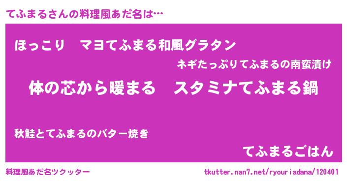 | 意味不明あだ名 | 『てふまるフォーエバー』 |