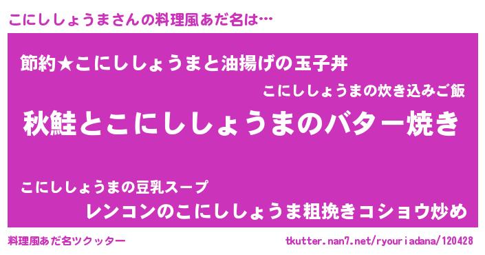 | 胡散臭い通販商品みたいなあだ名 | 『来世でも幸せになれる水素水…その名も「こにししょうま」』 |