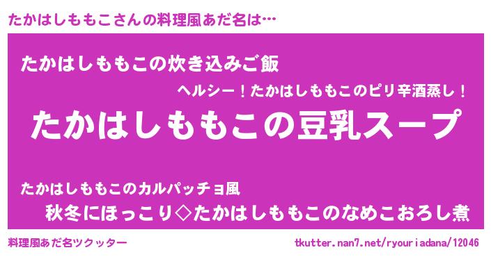 | ヘコむあだ名 | 『たかぷりん』『たかはしももこ(小並感)』 |