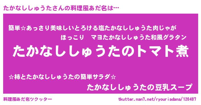 | ヘコむあだ名 | 『たかなししゅうた(苦笑)』『たかっちょ』 |