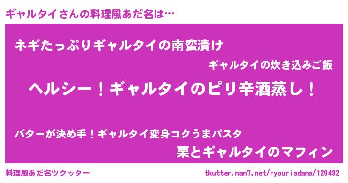 | ヒーロー風カッコイイあだ名 | 『究極戦士ギャルタイ』『幻影騎士ギャ』 |