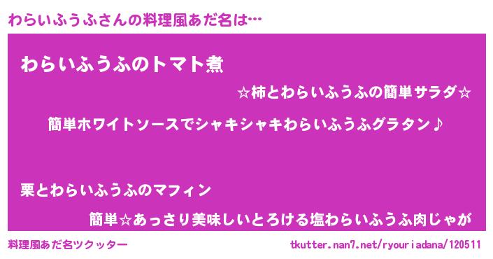 | 男性向けラノベタイトル風あだ名 | 『わらいふうふの嫁は女の子じゃないと思った?』 |