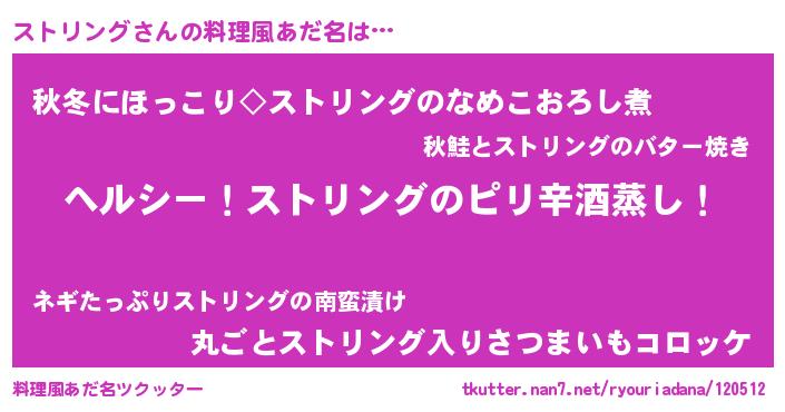 | 意味不明あだ名 | 『自称ストリング』『永久保存ストリング』 |