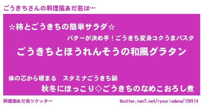 | 女子向けラノベタイトル風あだ名 | 『ごうきちの玉の輿計画!』 |