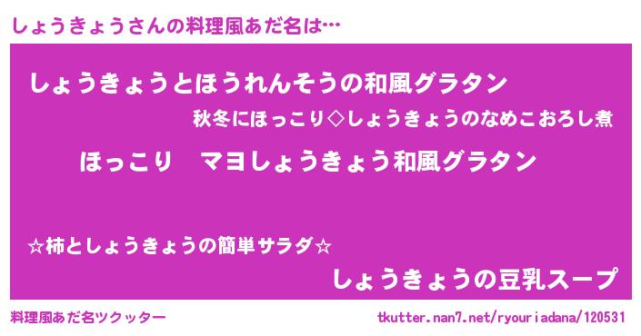 | ピコ太郎風あだ名 | 『ショ八郎』『シシ太郎』『ピシ六郎』 |