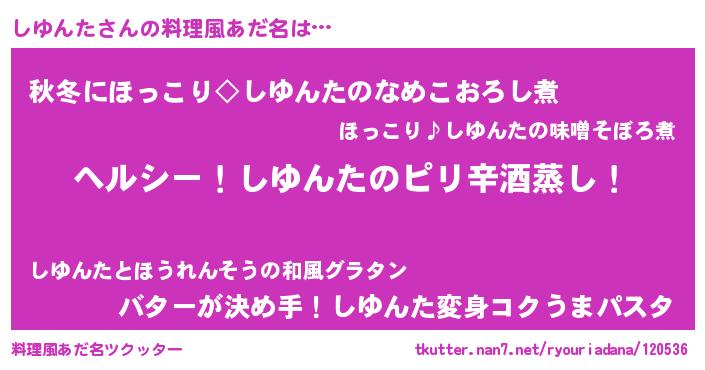 | 女子向けラノベタイトル風あだ名 | 『闇のしゆんた』『しゆんた恋絵巻』 |