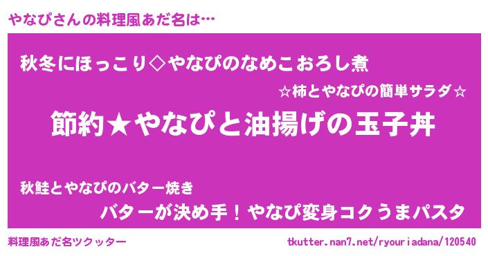 | 女子向けラノベタイトル風あだ名 | 『やなぴ姫と円卓の騎士』『やなぴ恋絵巻』 |