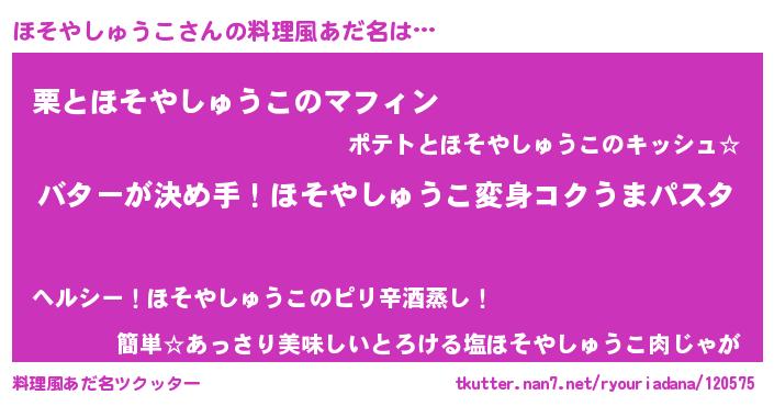 | ヘコむあだ名 | 『ほそやしゅうこ(小並感)』『ほそお』 |