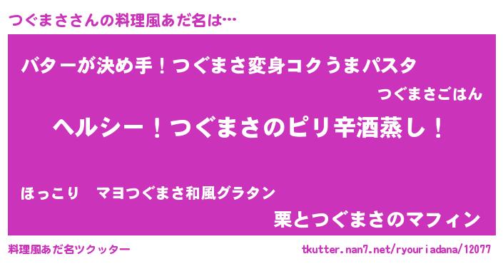 | 男性向けラノベタイトル風あだ名 | 『Re:つぐまさから始める異世界生活』 |
