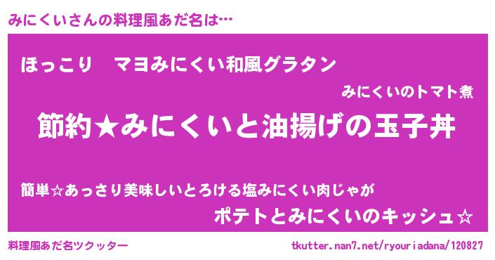 | ヘコむあだ名 | 『みににー』『みに太郎』『牛乳』 |