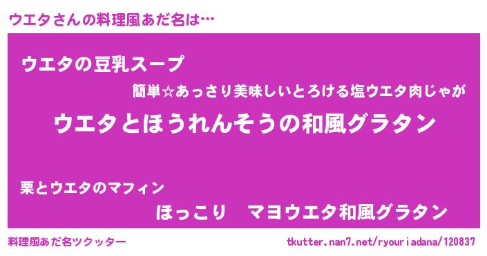 | 胡散臭い通販商品みたいなあだ名 | 『伝統あるサプリメント…その名も「ウエタ」』 |