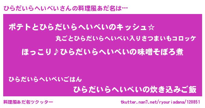 | 胡散臭い通販商品みたいなあだ名 | 『必ず成功する水晶球…その名も「ひらだいらへいべい」』 |