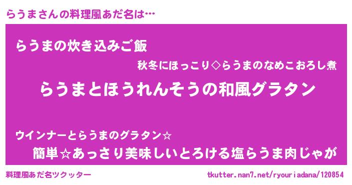 | ヘコむあだ名 | 『らうま(笑)』『なまこ酢』 |