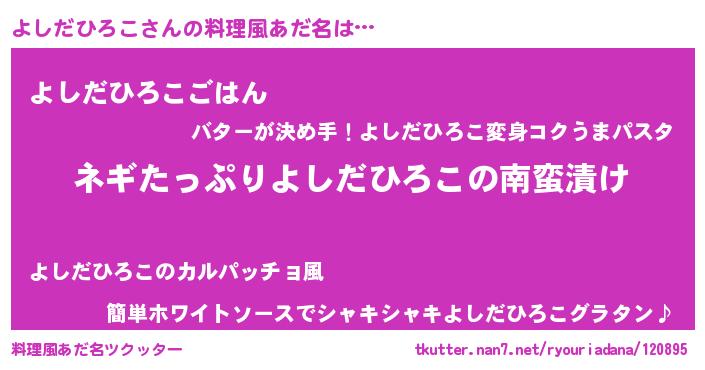 | 肩書あだ名 | 『よしだひろこCEO』『よしだひろこ中将』 |