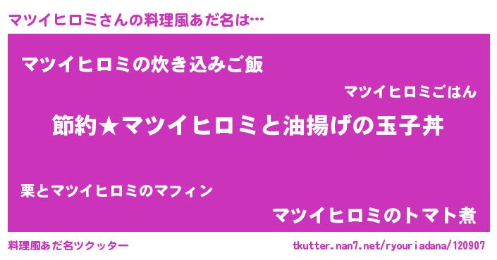 | ヒーロー風カッコイイあだ名 | 『スーパーマツイヒロミ』『仮面マツダー』 |