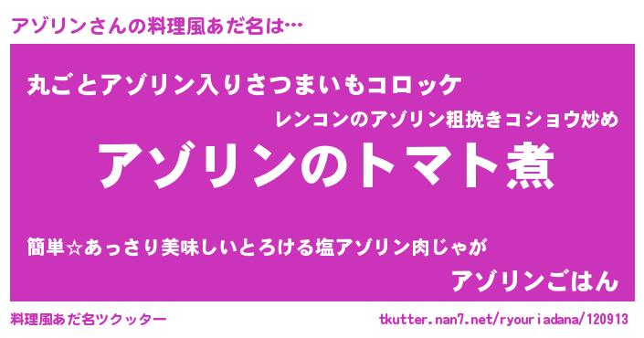| 女子向けラノベタイトル風あだ名 | 『アゾリン夫妻のなれそめ』 |