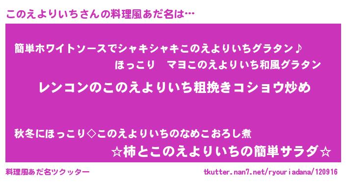 | 意味不明あだ名 | 『自称このえよりいち』 |