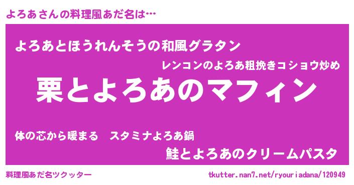 | ヒーロー風カッコイイあだ名 | 『正義の使者よろあ』『究極戦士ヨロア』 |