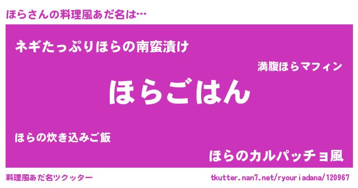 | ヘコむあだ名 | 『ほらにー』『ほら(笑)』『ほらお』 |