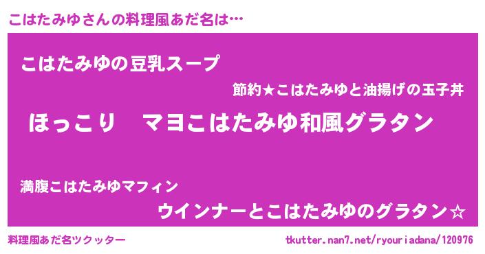 | 意味不明あだ名 | 『住所不定無職こはたみゆ(77歳)』 |