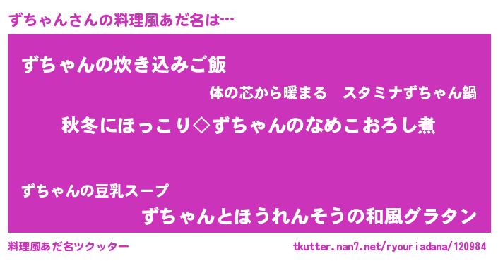 | ヒーロー風カッコイイあだ名 | 『ウルトラずちゃんマン』『幻影騎士ズチ』 |