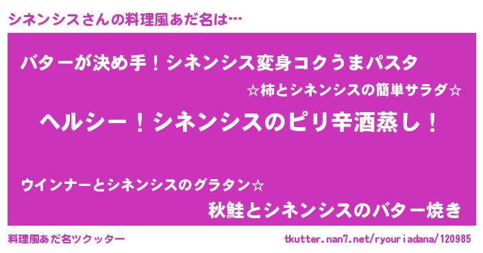 | 意味不明あだ名 | 『自称シネンシス』『永久保存シネンシス』 |