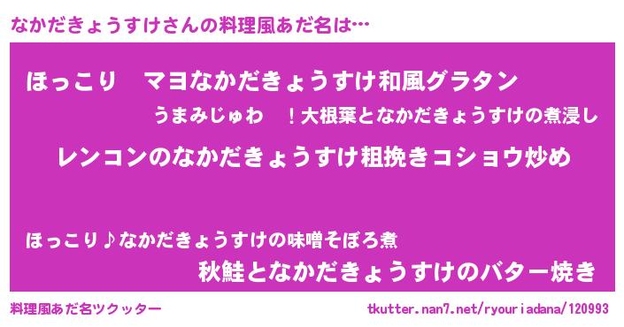 | 胡散臭い通販商品みたいなあだ名 | 『テレビで話題の高麗人参…その名も「なかだきょうすけ」』 |