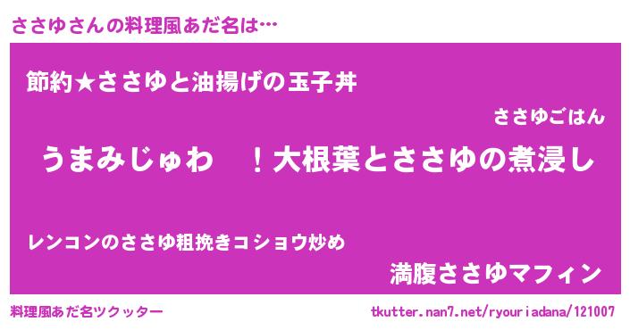 | 欧米人風あだ名 | 『ささゆクリステル』『マイケルささゆ』 |