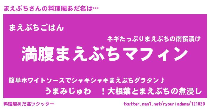 | 胡散臭い通販商品みたいなあだ名 | 『絶対に幸福をもたらす健康食品…その名も「まえぶち」』 |