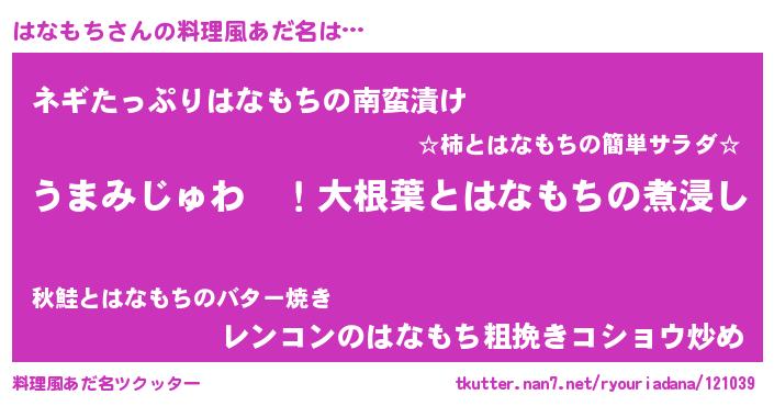 | 胡散臭い通販商品みたいなあだ名 | 『運命の人と巡り会える高級そうな皿…その名も「はなもち」』 |