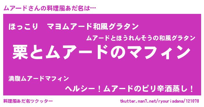 | 意味不明あだ名 | 『住所不定無職ムアード(86歳)』 |