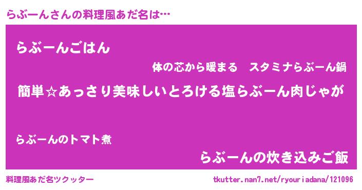 | ヒーロー風カッコイイあだ名 | 『ネオラブーン』『ウルトラらぶーんマン』 |