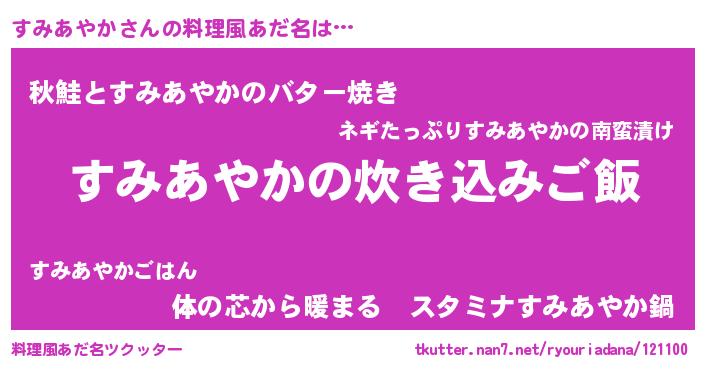 | 意味不明あだ名 | 『永久保存すみあやか』『自称すみあやか』 |