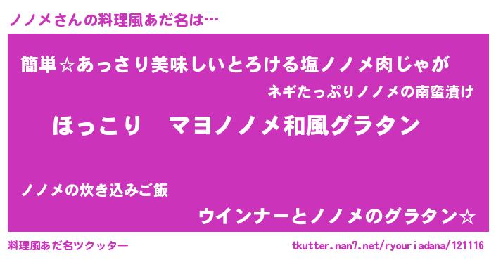 | ヘコむあだ名 | 『ノノメ(爆)』『豆乳』『ノノにゅー』 |