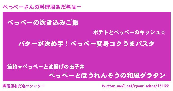 | 女子向けラノベタイトル風あだ名 | 『ぺっぺー恋絵巻』 |