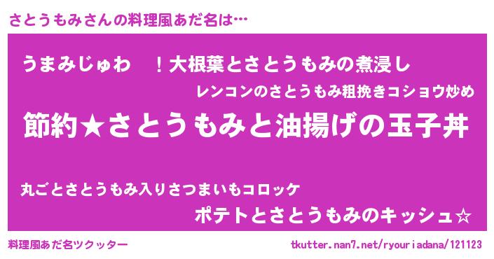 | ファンタジー風あだ名 | 『サトフェル』『エターナルサトウモミー』 |