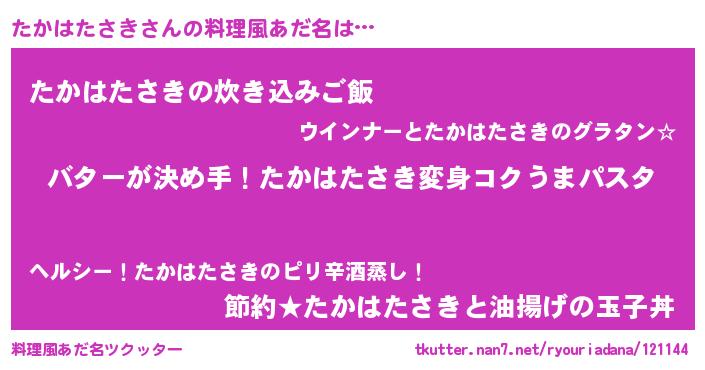 | ヘコむあだ名 | 『たかもー』『なまこ酢』『たかお』 |