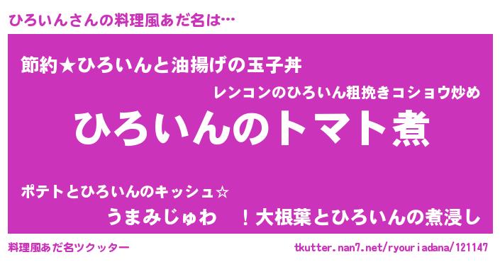 | ヘコむあだ名 | 『ひろっふぃ~』『なまこ酢』 |