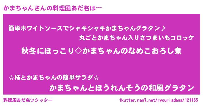 | ヘコむあだ名 | 『かまっちょ』『かまにー』『豆乳』 |