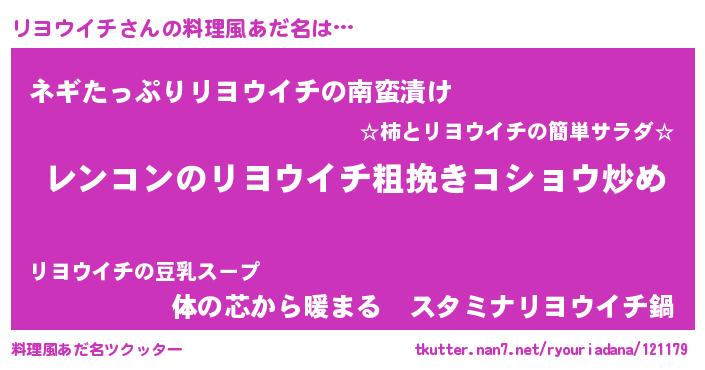 | 女子向けラノベタイトル風あだ名 | 『リヨウイチなんてお断りですっ。』 |