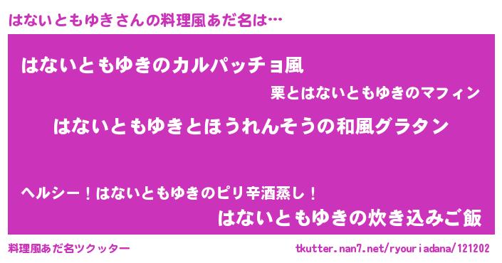 | 胡散臭い通販商品みたいなあだ名 | 『あなたにだけ特別に提供する100年もののヴィンテージワイン…その名も「はないともゆき」』 |