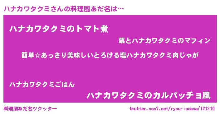| ヒーロー風カッコイイあだ名 | 『ネオハナカワタクミ』『仮面ハナダー』 |