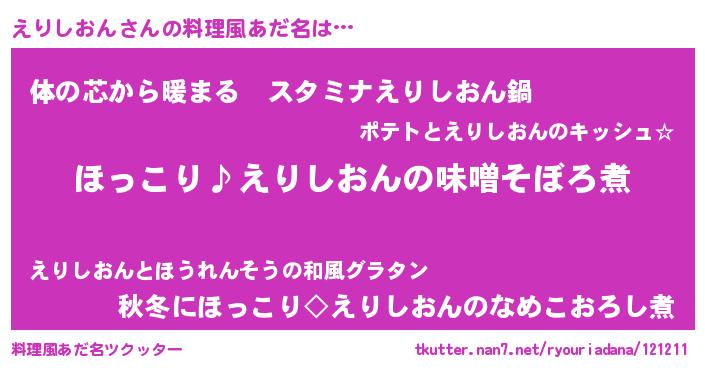 | 意味不明あだ名 | 『ペロリンえりしおん』 |