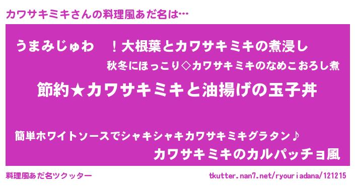 | 胡散臭い通販商品みたいなあだ名 | 『モテモテ間違いなし水晶球…その名も「カワサキミキ」』 |